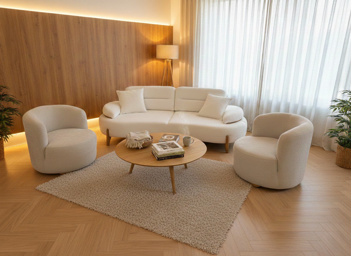 დივანი და სავარძლების სამეული კომპლექტი BEAN M2 ბეჟი (თურქეთი)