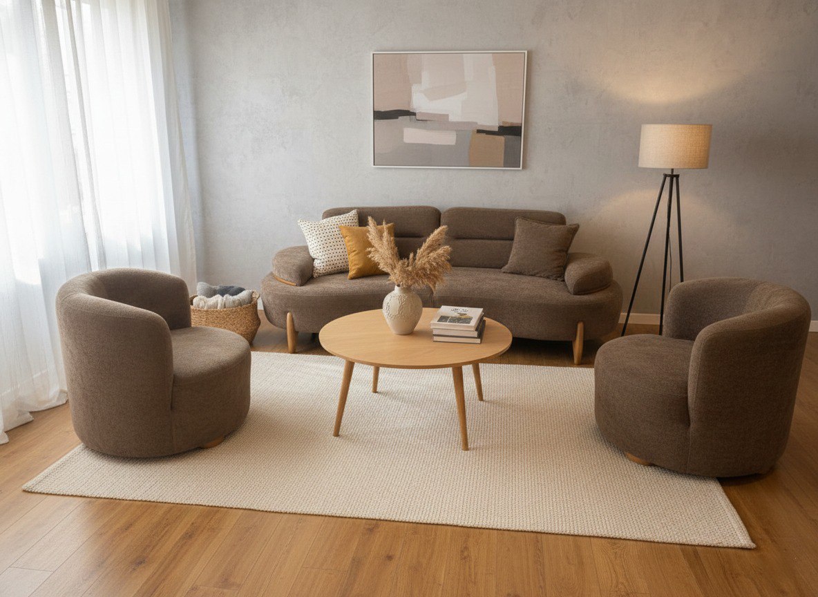 დივანი და სავარძლების სამეული კომპლექტი BEAN M2 ღია ყავისფერი (თურქეთი)