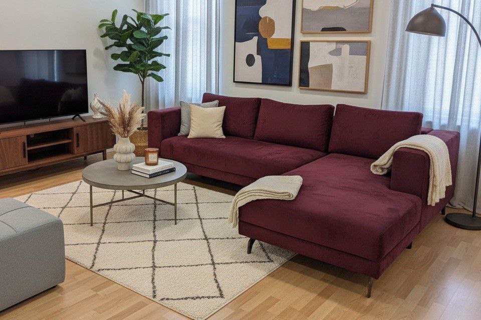 კუთხის დივანი ბორდოსფერი 2.80