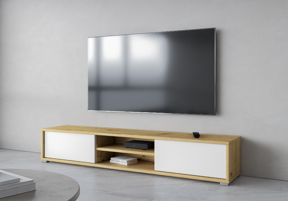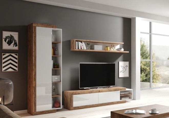 ტელევიზორის კედელი Helvetia CELINE 2.0 (ხის ფაქტურა - თეთრი პრიალა) პოლონეთი