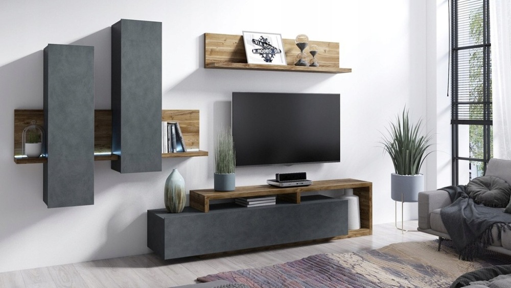 მისაღები ოთახის კომპლექტი BOTA ტელივიზორის მაგიდა სტენდი ნაცრისფერი Helvetia პოლონეთი