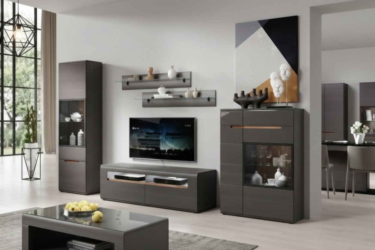 მისაღები ოთახის კომპლექტი HEKTOR (ანტრაციტი პრიალა) Helvetia პოლონეთი
