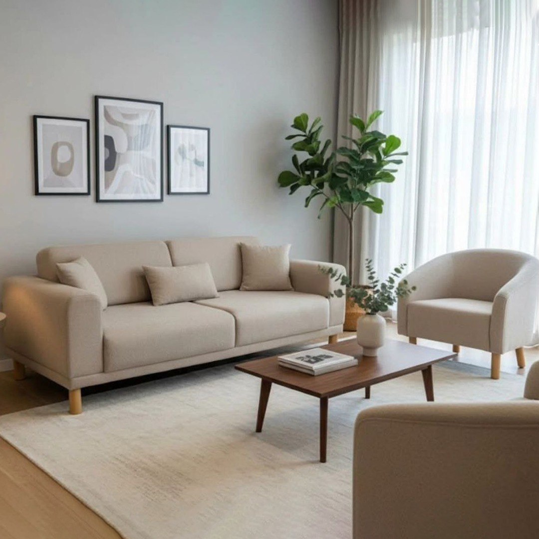 დივანი და სავარძლების სამეული კომპლექტი BEAN კრემისფერი (თურქეთი)