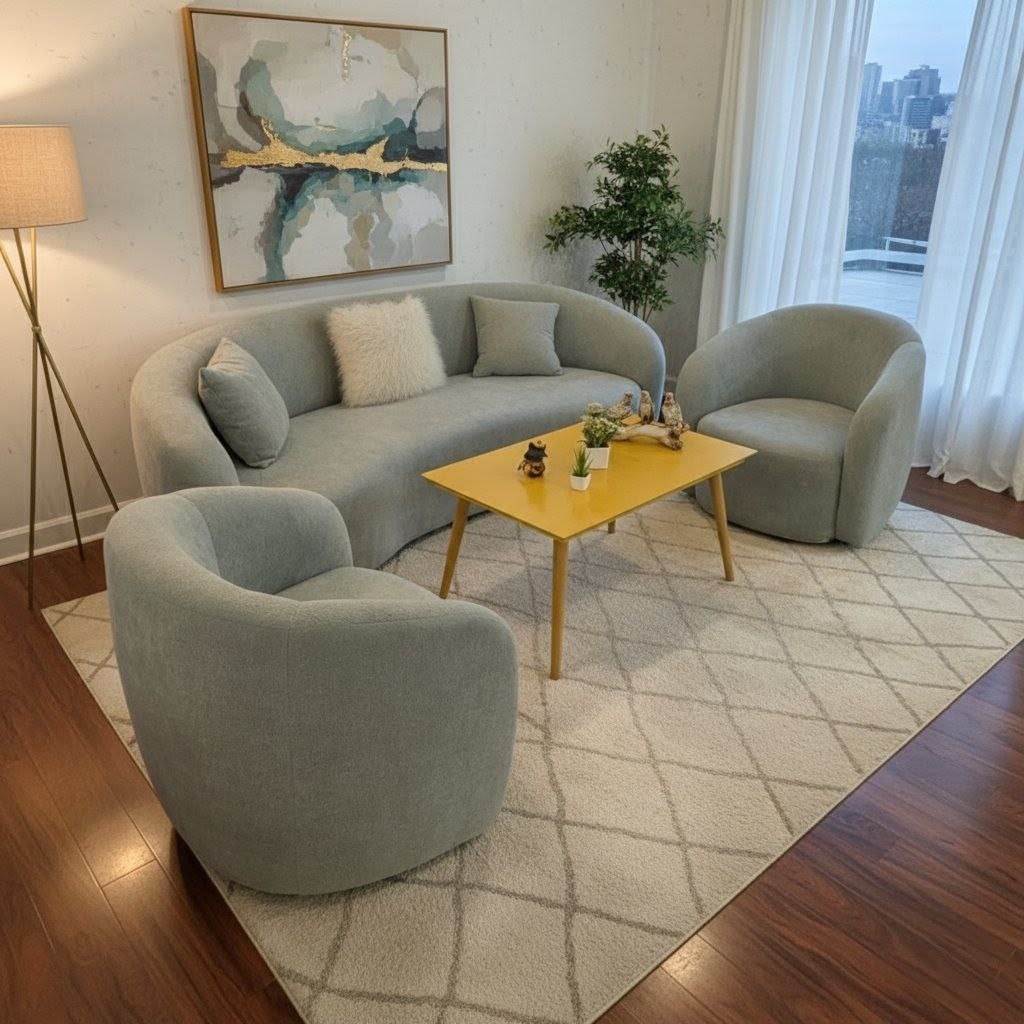 დივანი და სავარძლების სამეული კომპლექტი TESLA ღია მწვანე (თურქეთი)