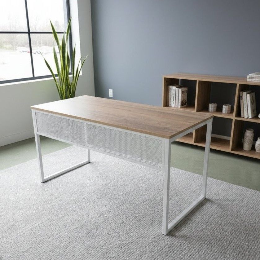 საწერი სამუშაო მაგიდა თეთრი/ხის ფაქტურა 140X60