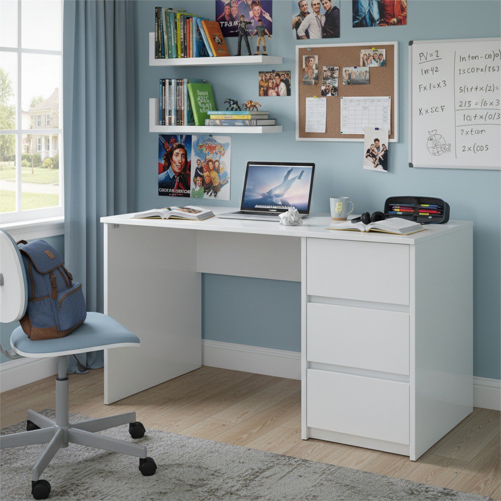 საწერი სამუშაო მაგიდა თეთრი 120X55სმ