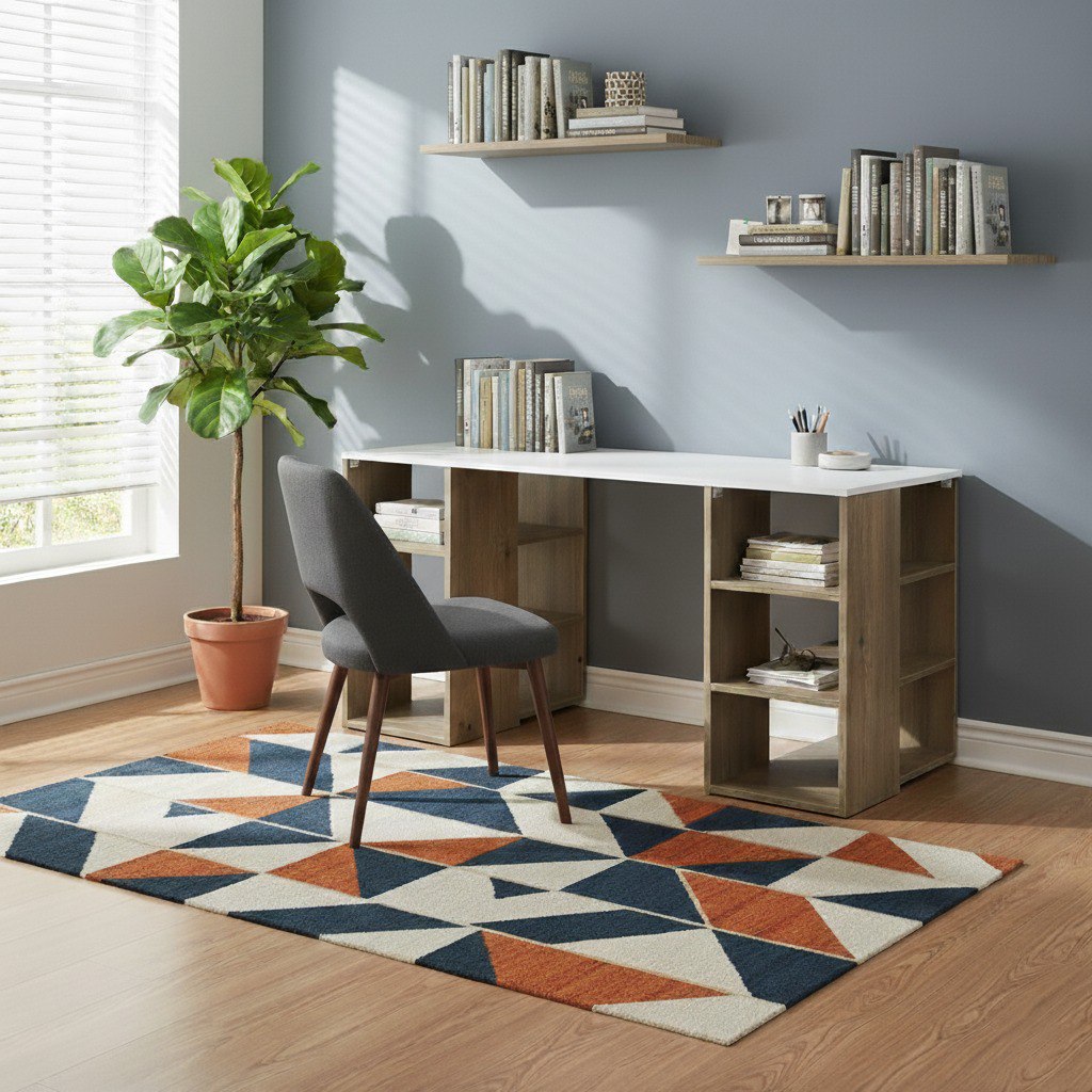 სამეცადინო საწერი მაგიდა წიგნების თაროებით ხის ფაქტურა