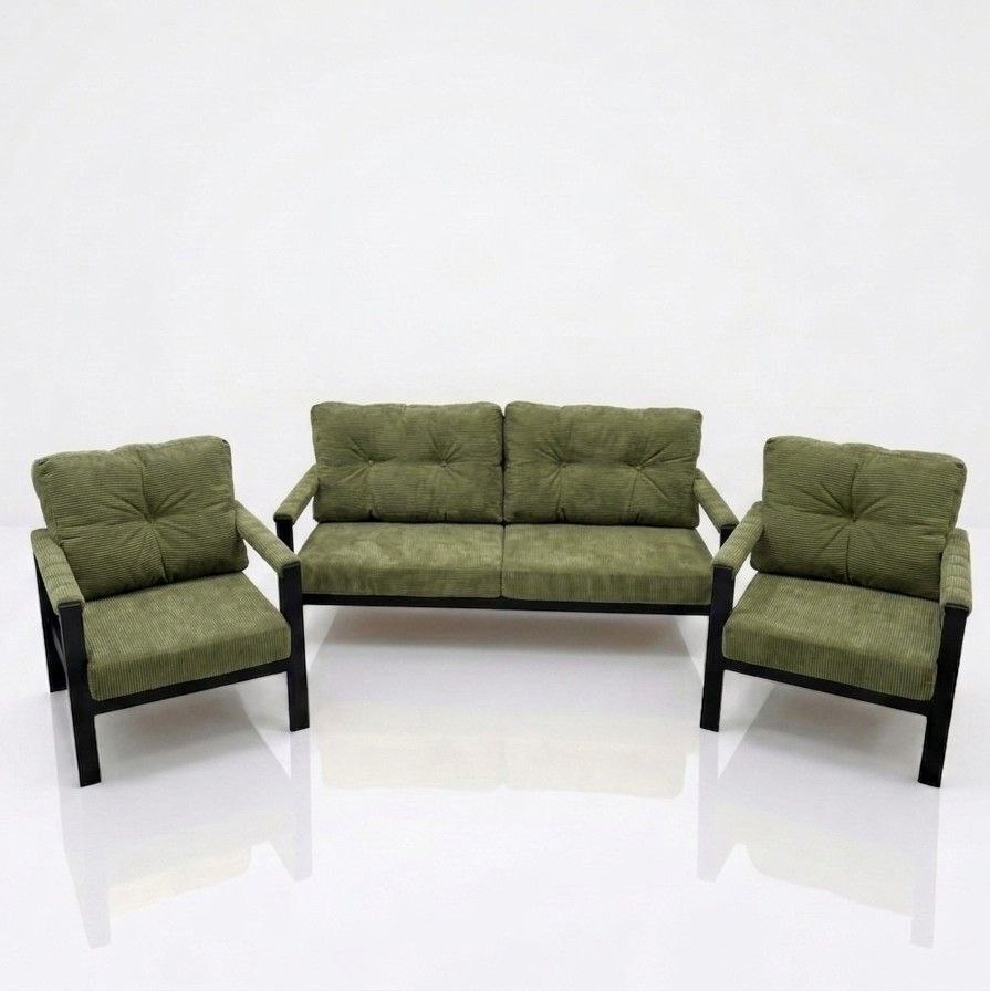 აივნის დივანი და სავარძლების სამეული მეტალის კომპლექტი მწვანე