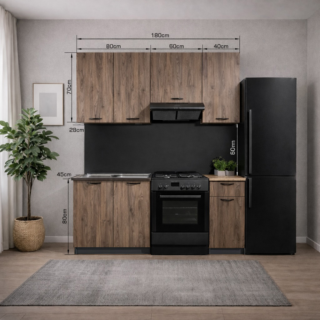 სამზარეულო ავეჯის მზა პატარა კომპლექტი ხის ფაქტურა 180სმ SK-M1-WOOD