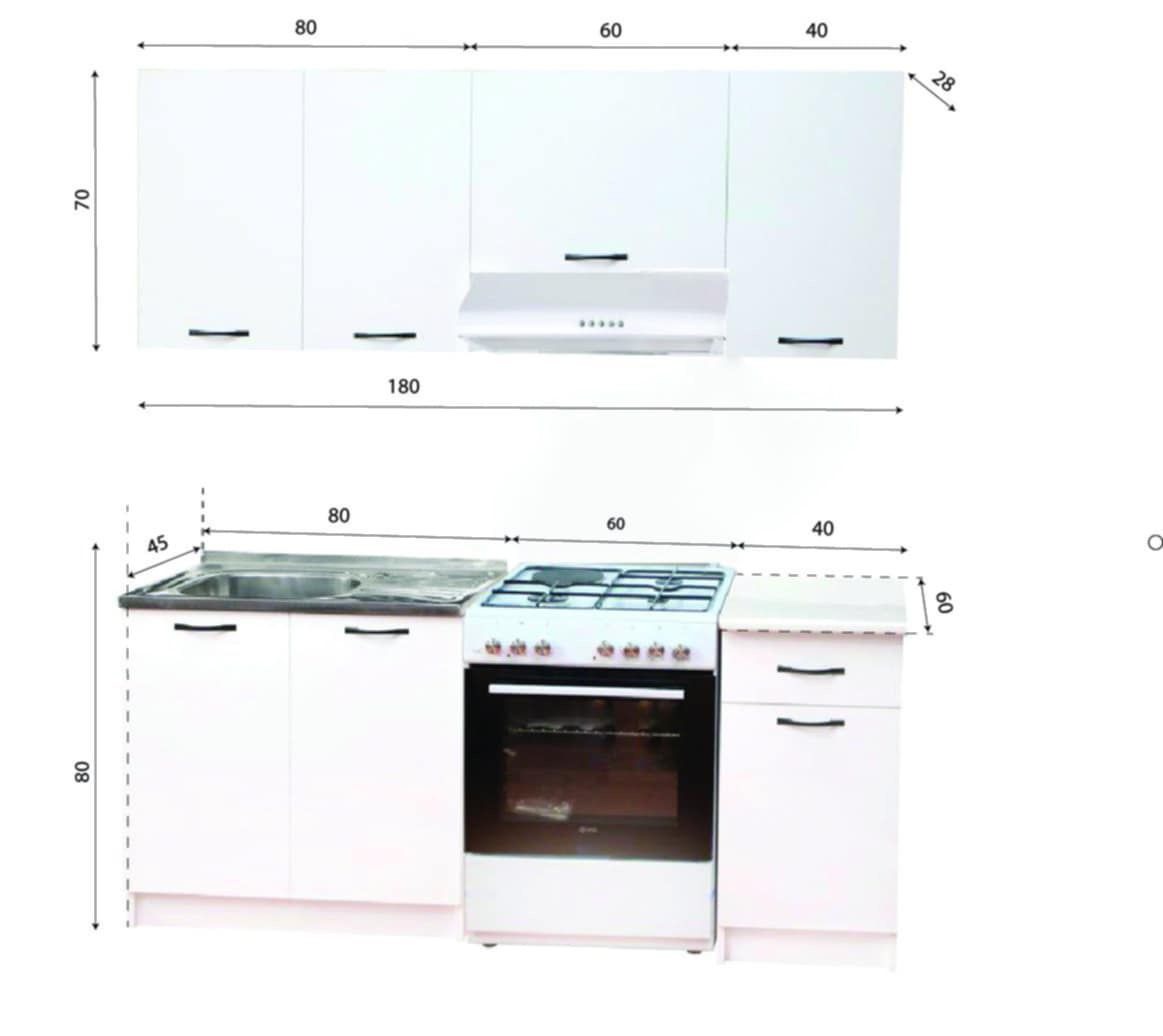 სამზარეულო ავეჯის მზა კომპლექტი თეთრი 180სმ SK-M1-WHITE